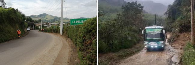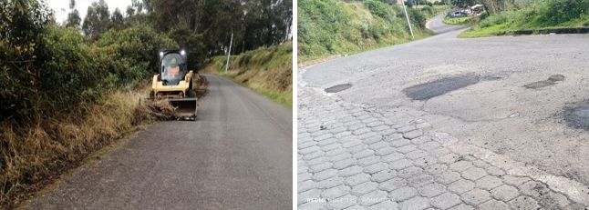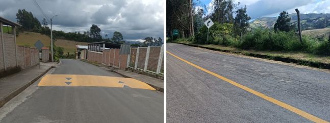 Se identifican de igual manera vías locales las cuales corresponden a las vías presentes en cada centro poblado y en especial en centro nucleado urbano de la cabecera parroquia con 1.24 km de adoquinado y 23.84 km de vía asfaltada. Se identifica de igual forma vías definidas como rurales especialmente determinadas como vías de tránsito de personas o animales estas conectan a los diferentes poblados rurales, predios, viviendas, zonas productivas, áreas geográficas y zonas turísticas de la parroquia, este tipo de vía tiene una longitud de 32.02 km con su capa de rodadura tipo empedrado y 47.24 km de lastre/suelo natural.